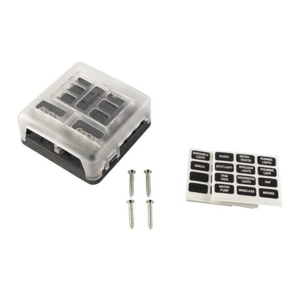 Säkringshållare för 6 st flatstiftsäkringar av standardtyp.