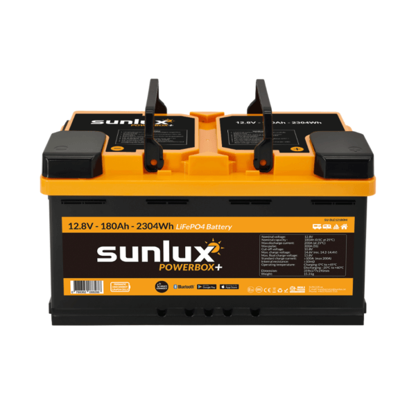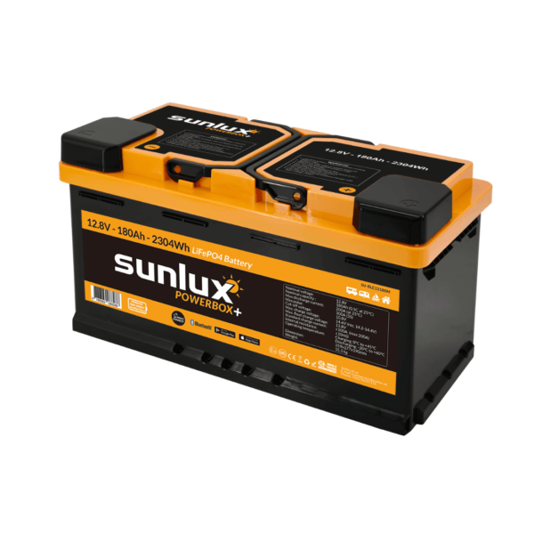 Sunlux Powerbox Plus 180Ah LiFePO4 – Enastående batteriprestanda i kompakt standardformat. Typgodkänt för fordon.