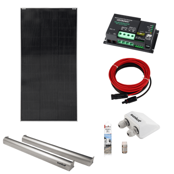 200W paketlösning med Sunlux Optitec-panel, utrustad med den senaste TOPCon-celltekniken och laddningsregulator 15A MPP 250 Duo Digital från Votronic