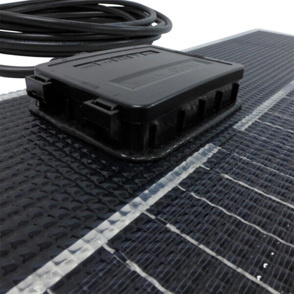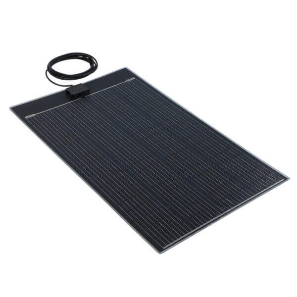 Semiflexibel solcellsmodul på hela 150W i ultrakompakt format, byggd på MBB-celler med verkningsgrad på 22,4%. Nyutvecklat frontlaminat av ETFE. Förmonterad kabel (2×4.0mm2) på hela 6 meter. Panelen lämpar sig mycket bra för installation på såväl husbil, husvagn och båt.