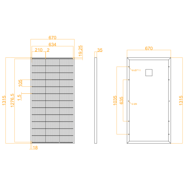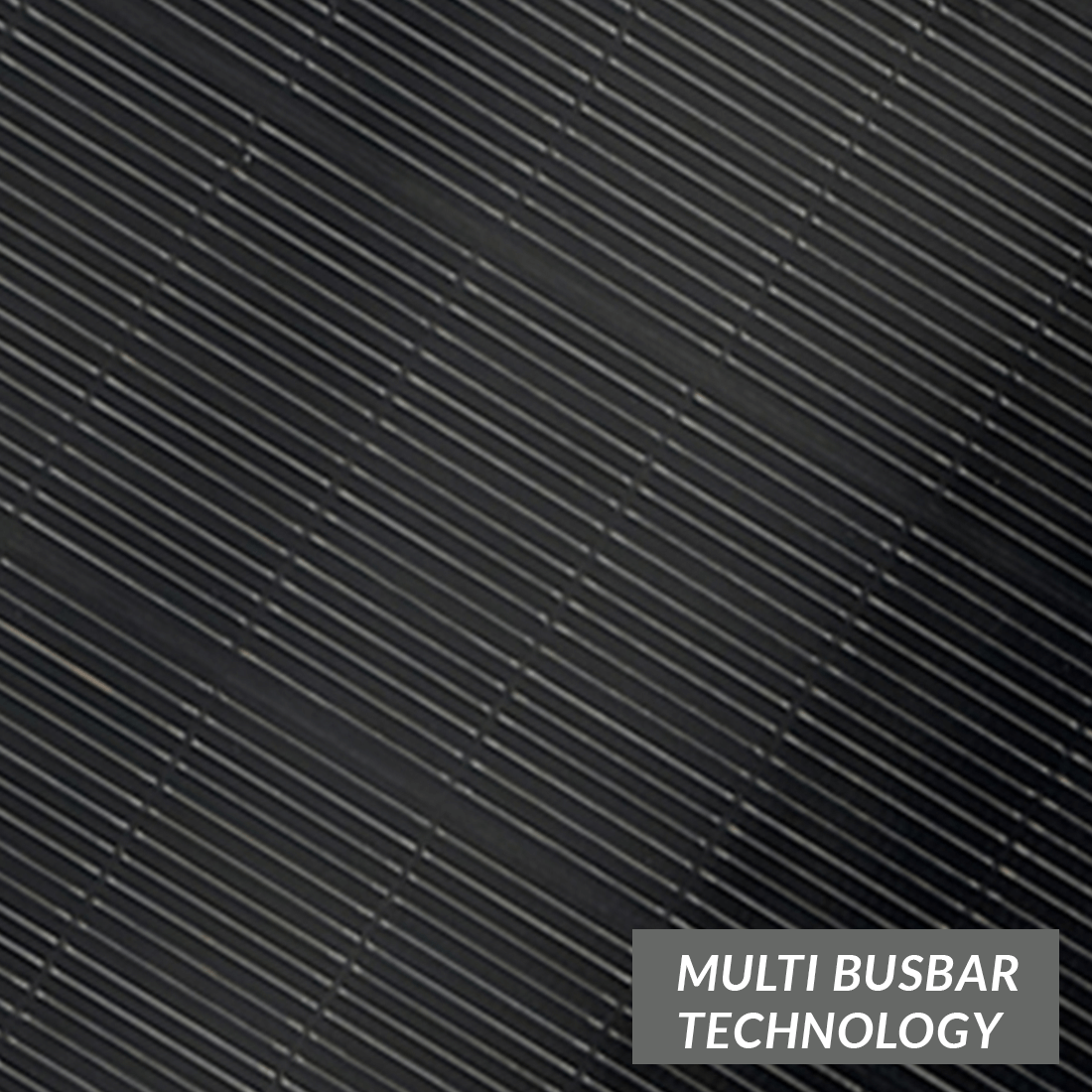 Panelen använder 18 tunna busbars som ger bättre strömfördelning och högre tillförlitlighet: