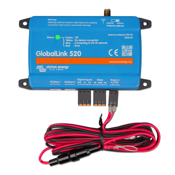 GlobalLink 520 från Victron Energy är en avancerad enhet för övervakning och styrning av off-grid system, med global 4G LTE-M-anslutning och integration med Victron Remote Management.