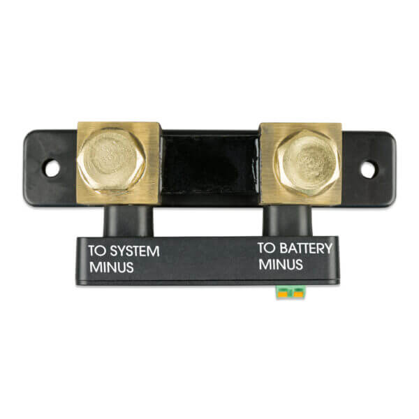 Med en inbyggd mätshunt i batteriets BMS så behövs det ingen extern shunt såvida du inte planerar att styra något externt relä eller liknande och ansluta detta till shunten.