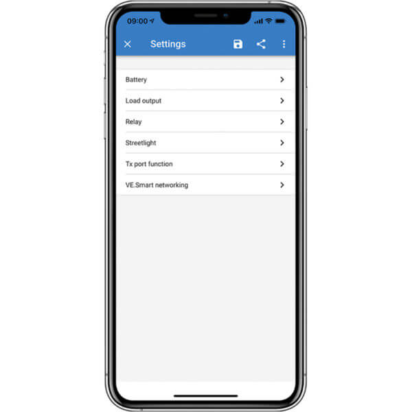 - fritt programmerbar algoritm för batteriladdning (via den kostnadsfria Victron Connect APP)