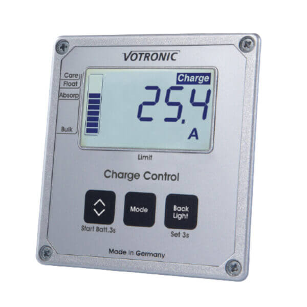 LCD Charge Control S-VCC från Votronic är ett styr- och driftenhet speciellt för laddningsbooster i VCC-serien. Den ger en snabb och direkt visning av viktiga parametrar som batterispänning, aktuell laddningsström och visar även batteriets laddningsfaser.