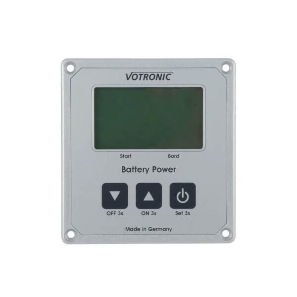 Hur mycket återstående laddning finns det i bodelsbatteriet? Är batteriet verkligen fulladdat? Varför tas energi från batteriet, även om strömförbrukarna är avstängda? VOTRONIC LCD-battery computer S ger svar på dessa frågor – exakt i procent (%) och ampere-timmar (Ah). Med en knapptryckning ger den full information om batteriladdningen, strömningsflödet och batterispänningen. Snyggt designad display med inbyggd bakgrundsbelysning gör att displayen blir mycket tydlig även på avstånd och ogynsamma ljusförhållanden.
