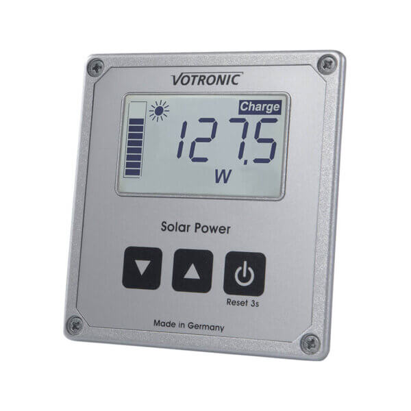 Få full koll på ditt solcellssystem genom att ansluta en fjärrdisplay till regulatorn. I displayen kan du utläsa hur effektivt ditt system laddar samt hur mycket energi du har kvar i batteriet. Se den effekt som solcellspanelen producerar och visa data från den dagliga produktionen.Votronic LCD Solar Computer S passar laddningsregulatorer från såväl SR serien och MPP serien.