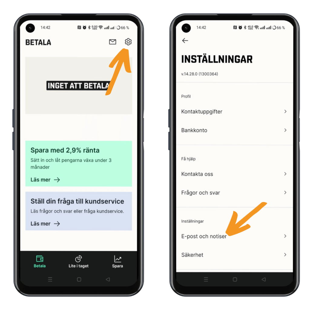 Aktivera Pushnotiser i Appen – Få en automatisk påminnelse innan Fakturan ska vara inbetald.