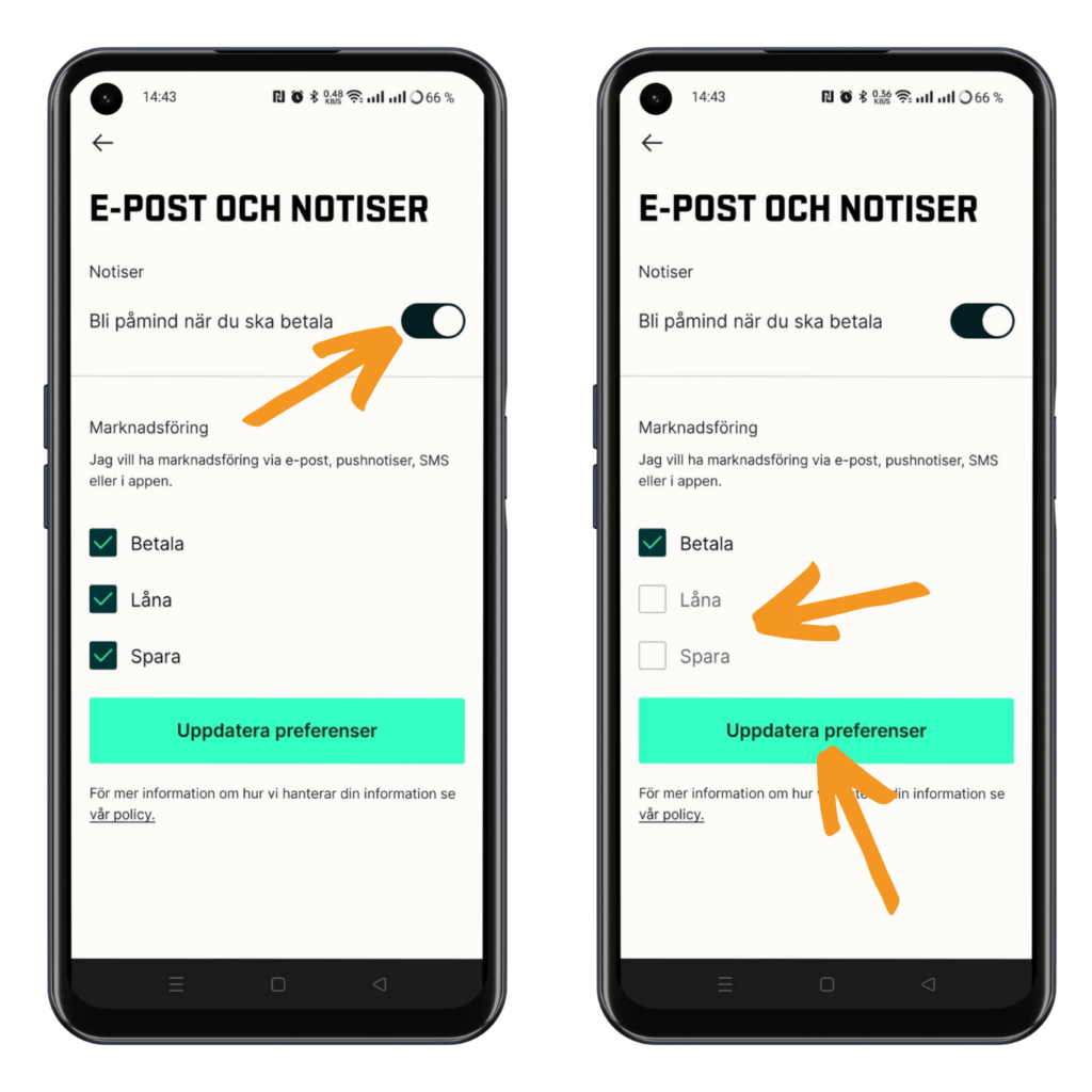 Så hör gör du för att stänga av Qliros meddelande avseende Lån och Sparande