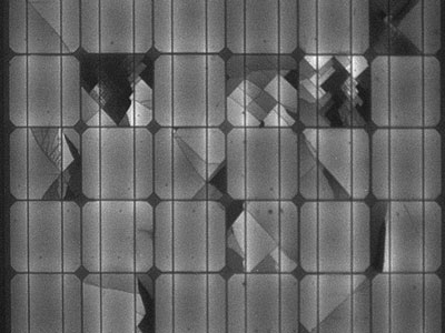 Bild ovan: ELCD-test som visar en panel med defekta cellplattor jämfört med en felfri modul med kvalitetsceller.